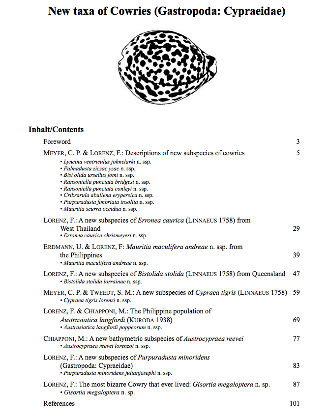 "Conchylia" and "Acta Conchyliorum" are published by the Club Conchylia | Vol. 16 (2018) features 16 new cowry taxa. | Vol. 24: Neogene Cowries of Java (2025) features 35 new cowry taxa |